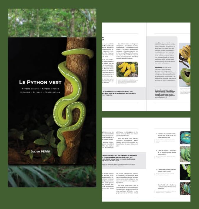 Ich bin sehr glücklich euch hier eine weitere Monographie zum Thema Grüner Baumpython ankündigen zu können. Mein Jahrzehntelanger Freund Julien Perri hat dieses Werk in akribischer Detailarbeit zusammen getragen und Morelia viridis sowie Morelia azurea in allen Facetten durchleuchtet.
