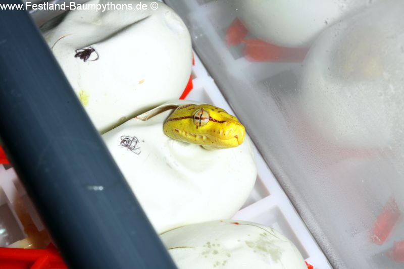 Schlupf der ersten Gelege Morelia viridis Sorong x Sorong 2017.